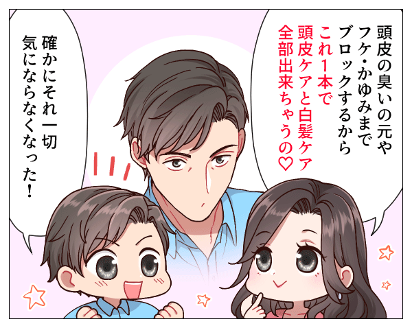 全く信じていなかったクレムドアン。なんとなく使い始めてそのままだったのですが、子供や妻にいい匂いと言われる事が多くなりそれからはずっと愛用しています(笑)白髪もですが、頭皮の臭いも気にならなくなりました!